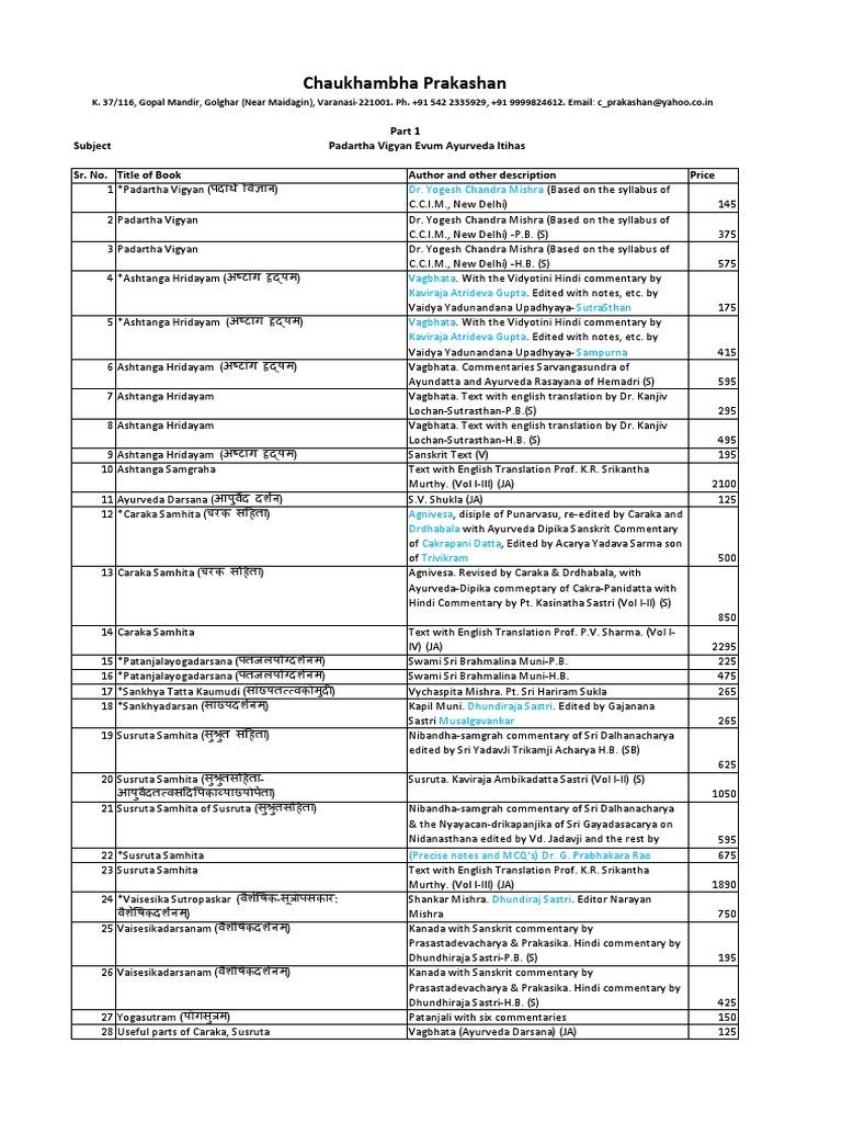 Chaukhambha Prakashan Suggested Ayurveda Books Pdf Ayurveda